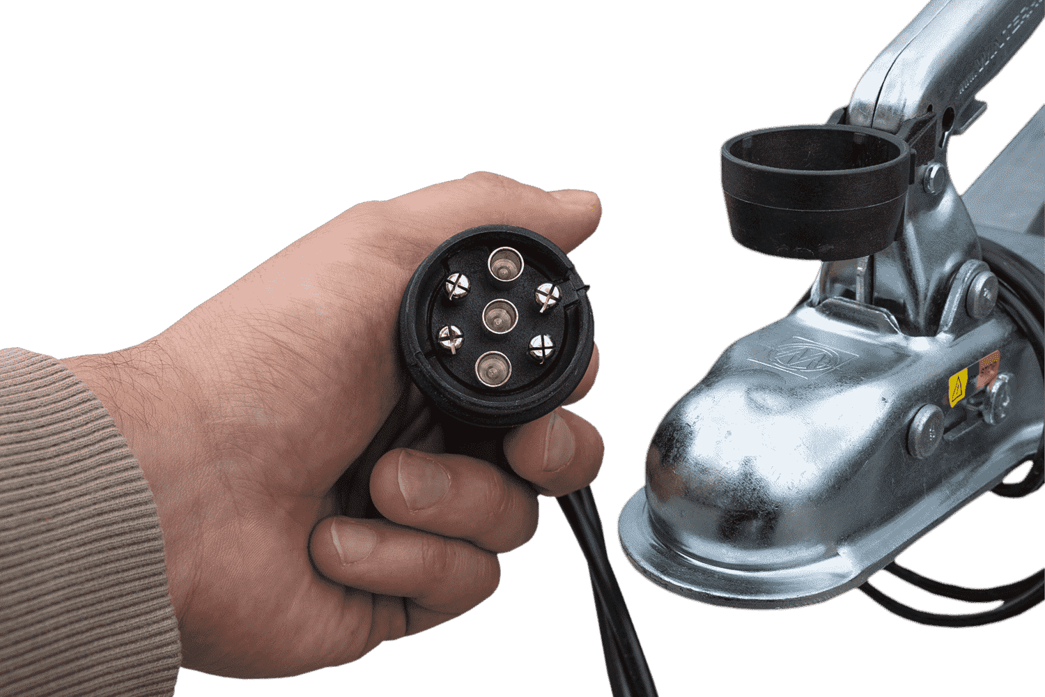 • Timon pliable en V, avec un boîtier d’attache équipé d’un témoin d’attelage correct.